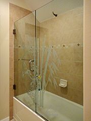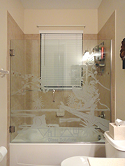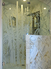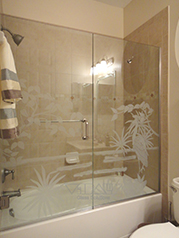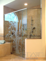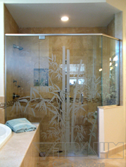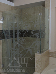 Etched glass is a piece of art. Whatever you can imagine can be done in etched glass. Your imagination is the limit when it comes to etching the glass. We want to match the image that you want in your frameless glass. The glass that you have etched can be used for anything like pool fences, glass railings, shower doors, etc. We will custom make whatever you want. Use your creativity and have art work within your glass.