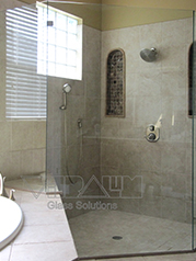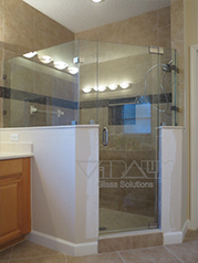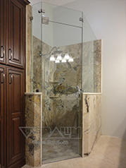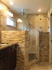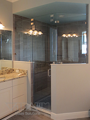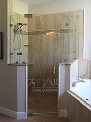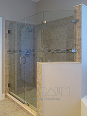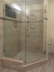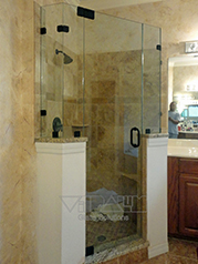 There are many design variations for a neo angle corner shower. The door placement can move. The door can be flanked by two smaller glass panels for support. The return panels may sit atop one or two half-walls. You tell us what you want and we can custom create it.